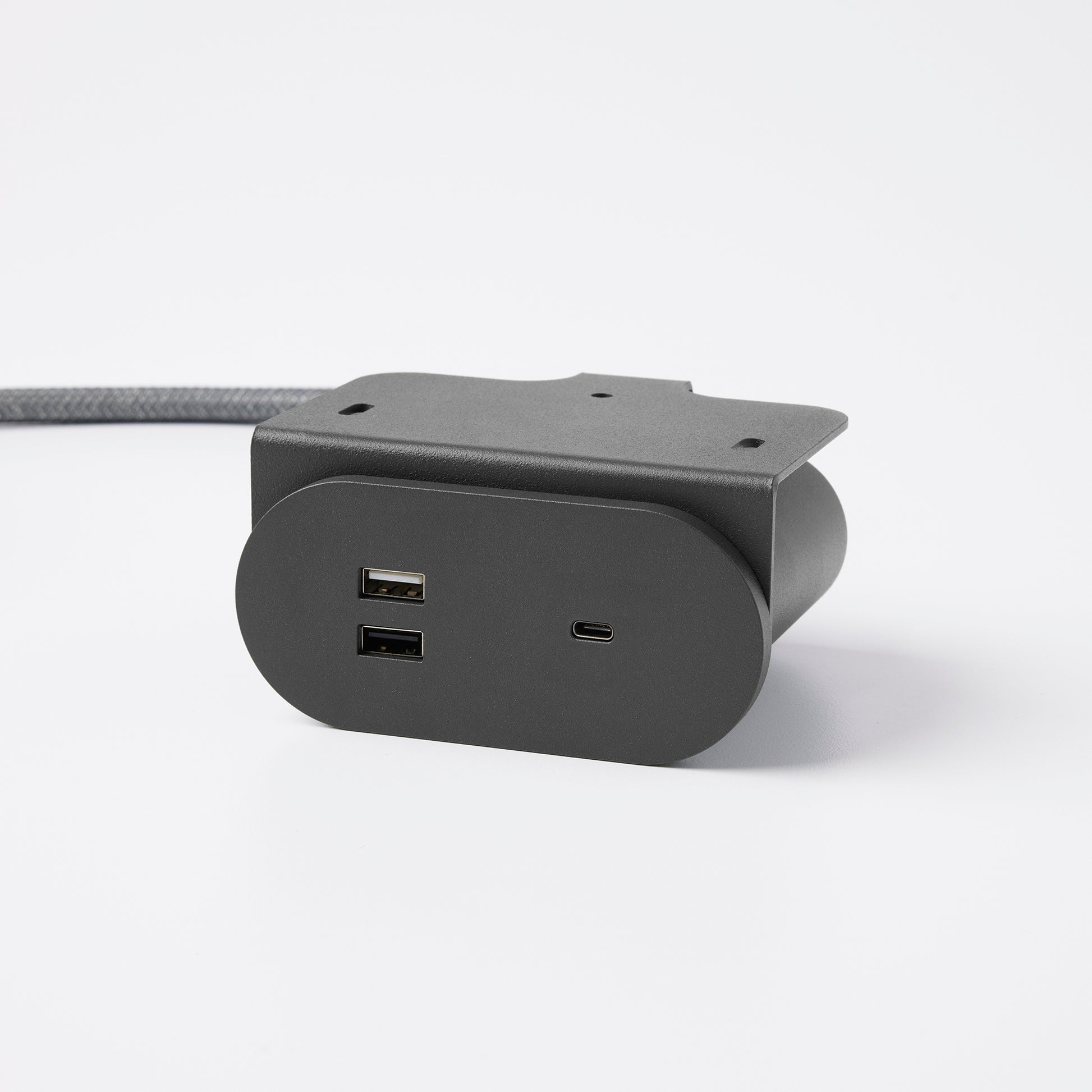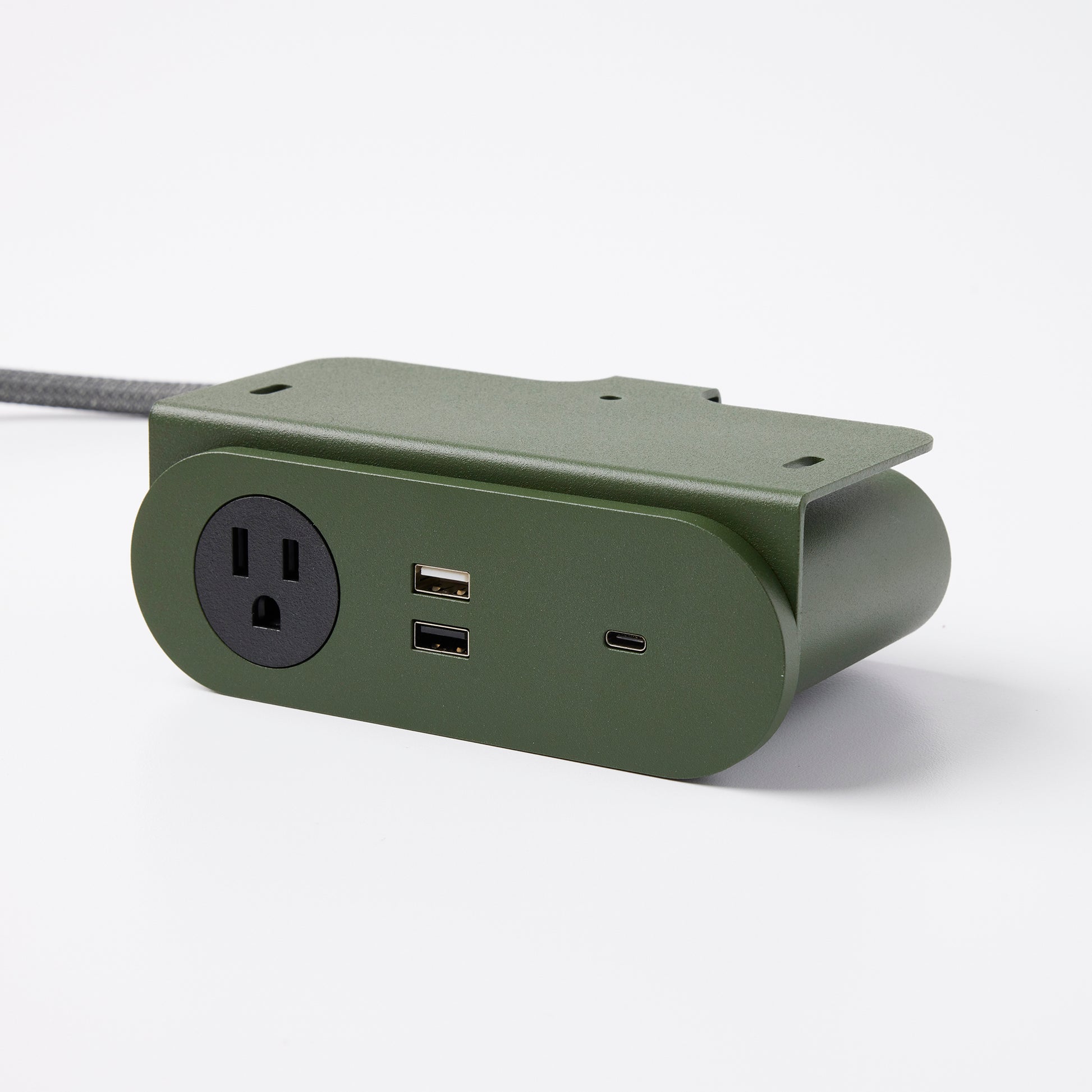 Nik can be mounted below or onto your work surfaces to provide convenient power wherever you work. Choose from several configurations of AC receptacles and USB charging ports to support your unique power needs. Nik can be made to order— to infuse a pop of color on your desktop or to blend quietly with your décor.